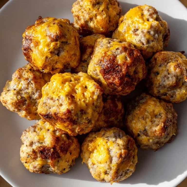 Pin it These little golden balls found their way into my kitchen during a chaotic Tuesday night when I was tasked with bringing something to a last-minute potluck. I had chicken in the fridge, sausage in the freezer, and exactly zero inspiration. But then I remembered Bisquick—that humble box that's saved countless home cooks—and suddenly this simple combination came together. The first batch disappeared so fast I barely got to try one, and I've been making them ever since.