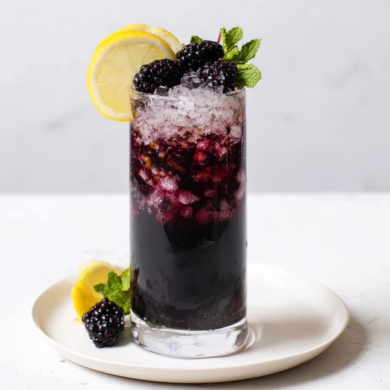- Place a few fresh blackberries on top of the drink, slide a lemon or lime wheel onto the rim, and add a sprig of fresh mint if you want that extra touch of elegance. Serve immediately while the ice is still solid and the layers are still distinct.