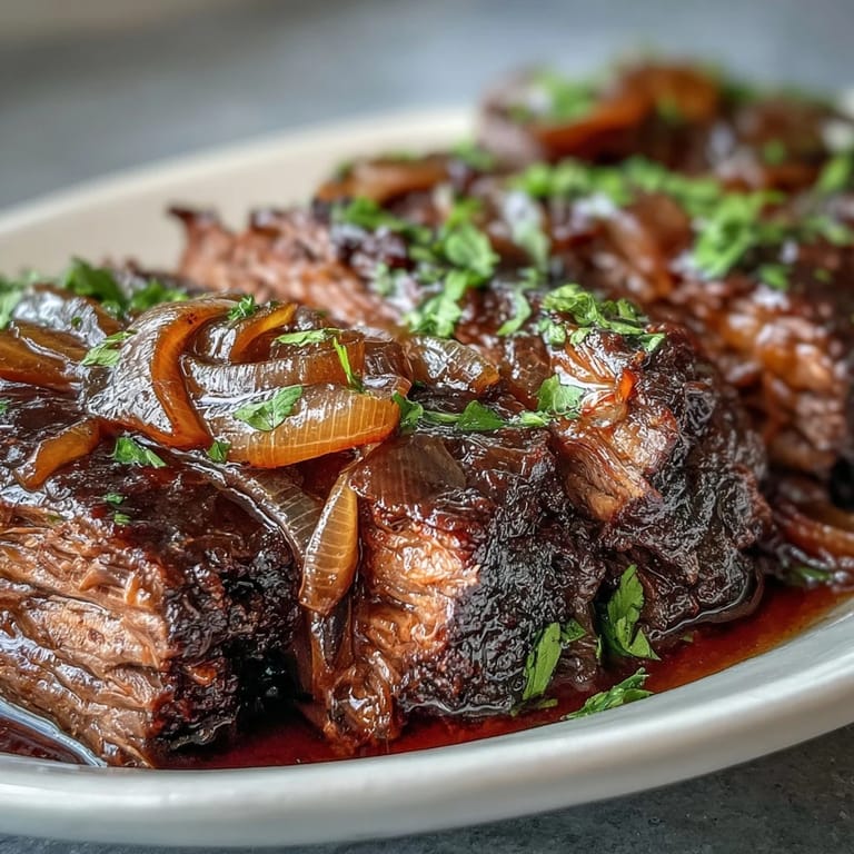 Pin it The smell of onions turning golden in olive oil always pulls me back to a Sunday afternoon when I had nothing planned but time. I'd picked up a chuck roast on a whim, and a half-empty bottle of red wine sat on the counter, daring me to use it. By the time the roast hit the slow cooker, the kitchen smelled like a bistro I couldn't afford to visit. Nine hours later, I pulled back the lid and knew I'd stumbled onto something worth repeating. The beef practically fell apart under my fork, and those onions had turned into something sweet, dark, and completely irresistible.