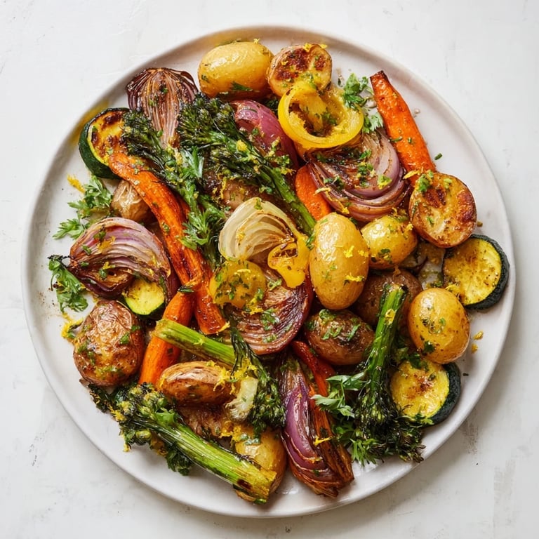 Pin it A fresh, vibrant medley of garden vegetables roasted with delicate herbs and finished with tender greens and foraged fern tips. This elegant side dish celebrates spring flavors and brings a woodland touch to your table.