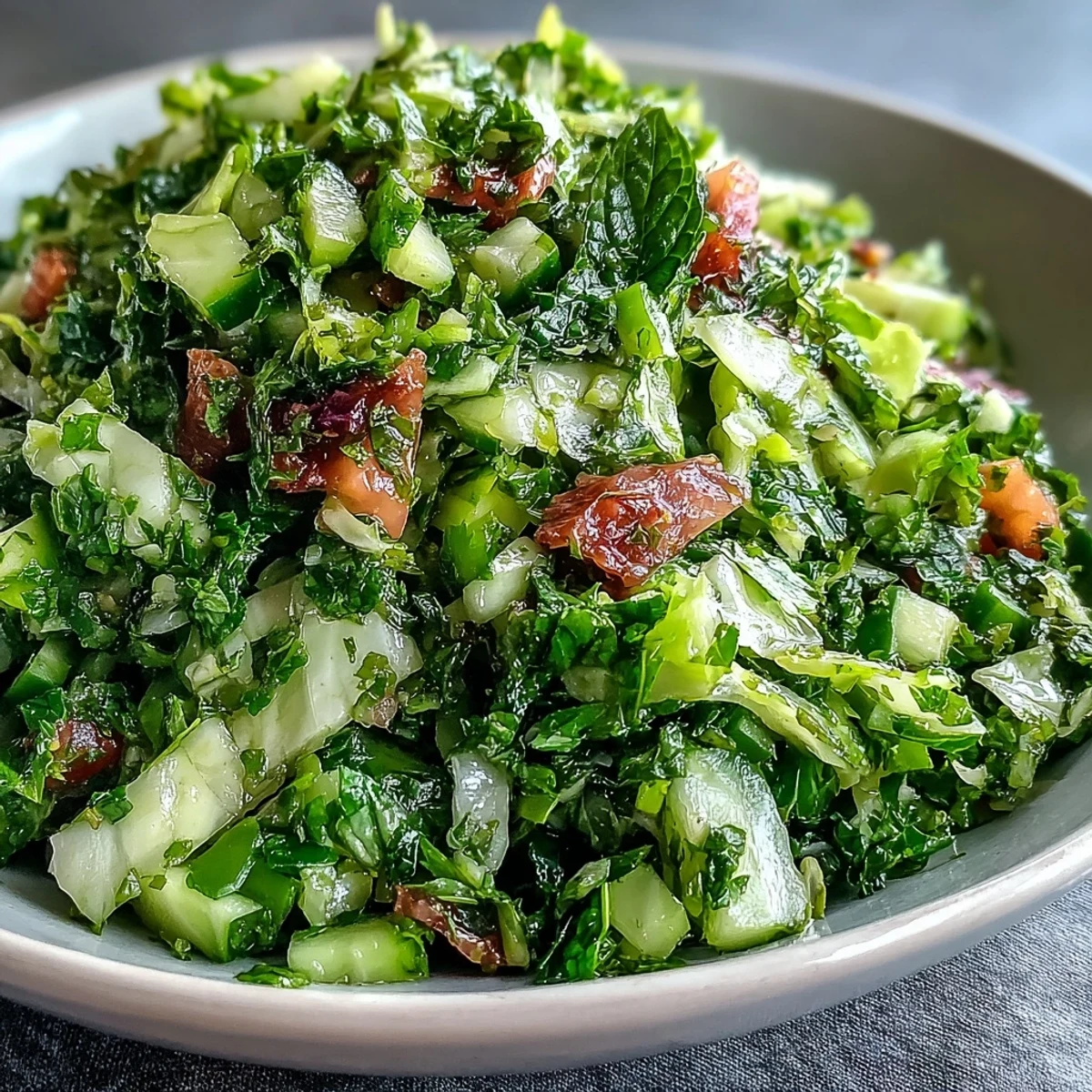 - Toss in the parsley and mint, using your hands to mix everything gently so the herbs don't bruise. The salad should look green and lively.