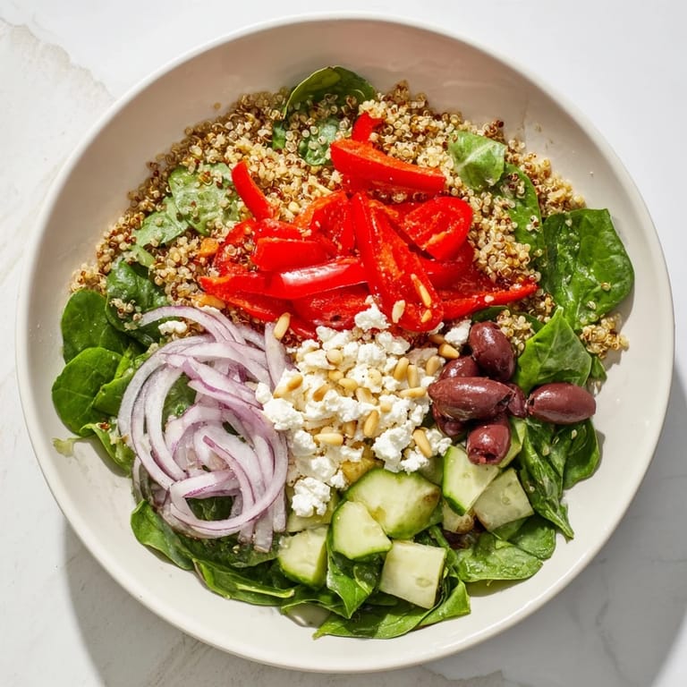 Pin it A vibrant, wholesome bowl featuring fluffy grains, crisp greens, and Mediterranean-inspired toppings. Perfect as a light meal or a nourishing side, this dish bursts with fresh flavors and color.