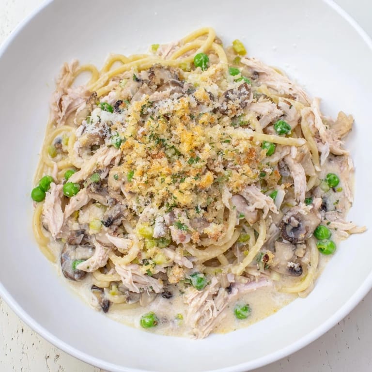 Turkey Tetrazzini lives in that beautiful space between holidays and weeknight dinners, working equally well for the day after Thanksgiving or for Sunday dinner when you want something warming but not heavy. I've made it in autumn when the first cool evenings arrive and people start craving cream-based dishes again, but it's honestly good enough to bring out any time leftovers find their way into your fridge. The recipe adapts beautifully to rotisserie chicken if you haven't got turkey, so it's never restricted to one season or one occasion.